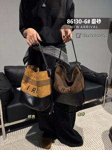 复古大容量磨砂皮水桶包包女2025秋冬新款条纹跨境时尚单肩斜挎包