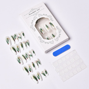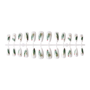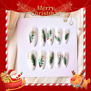 24片跨境欧美杏仁穿戴甲圣诞树彩绘法式星月美甲甲片成品批发