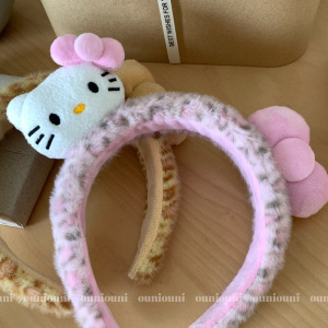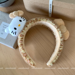 豹纹KT猫咪发箍可爱少女心毛绒绒头箍洗脸化妆敷面膜压发发卡新款