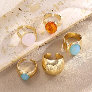 欧美跨境时尚复古宝镶宝石合金戒指 几何ins风不规则戒指套装女