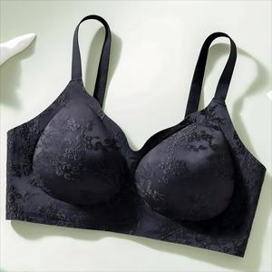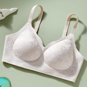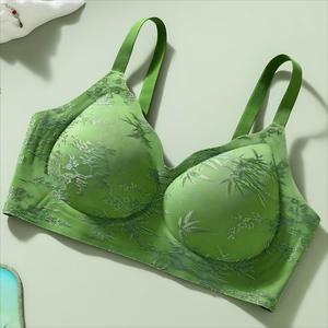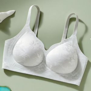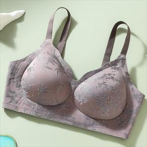 直播爆款国风波浪浮雕提花软支撑内衣薄款透气小胸聚拢固定杯文胸