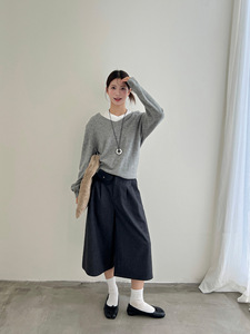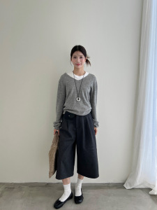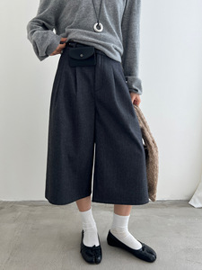 [简裁]T-PLATFORM 老钱风极简休闲裤女早秋高腰显瘦七分裤83157