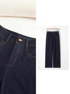 【秋季新款】专柜正品蚕 丝百搭显瘦窄版阔腿裤直筒牛仔裤