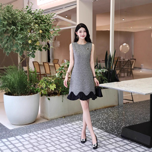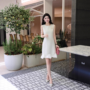 2025年夏季新款女装欧美风无袖连衣裙圆领设计优雅大方温柔气质裙