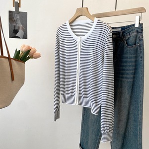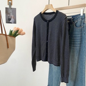 25秋装新品韩版圆领细条纹双层门襟设计版羊毛柔软亲肤开衫6592