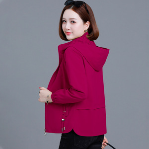 短款外套女春秋款2025新款中年妈妈秋季女装百搭休闲连帽夹克上衣