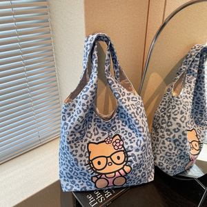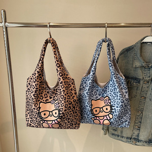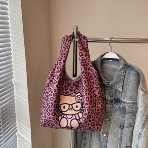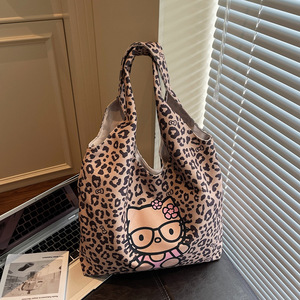 卡通kitty猫大容量慵懒背心包托特2025新款女士豹纹单肩包购物袋