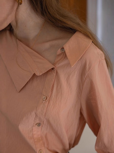Dailyart“日落回信”工艺洗天丝锦暗格纹翻领斜门襟长袖衬衫上衣