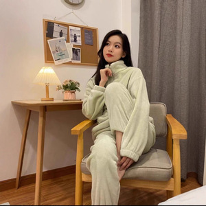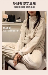 拉链家居服套装女秋冬新款加厚保暖休闲运动睡衣外套暖暖套装简约