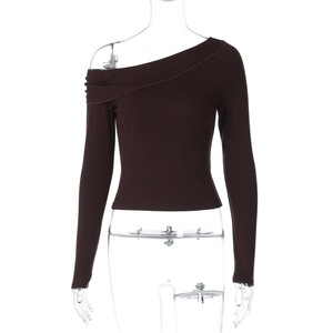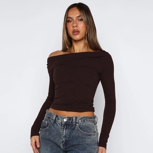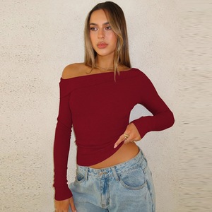 欧美ins风女装秋季新品辣妹纯欲风露肩修身显瘦内搭打底衫上衣