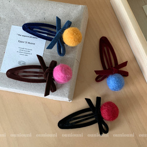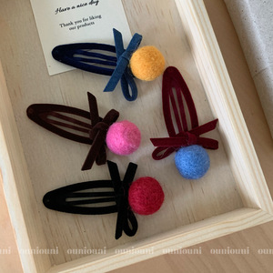 糖果色羊毛毡球球发夹BB夹丝绒蝴蝶结刘海夹掰掰夹发卡边夹发饰品