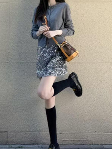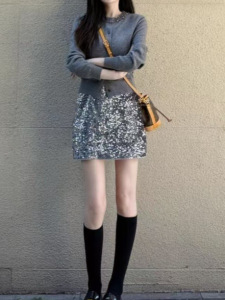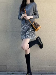 今年流行漂亮高级感洋气香风灰色毛衣女亮片细闪半身裙套装女秋季