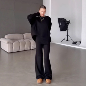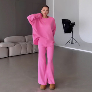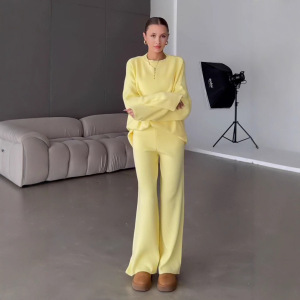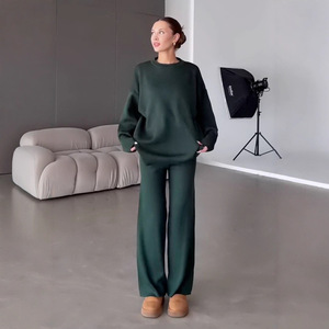 欧美跨境女装2025秋季新款居家休闲圆领长袖毛衣宽松针织修身长裤