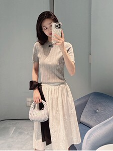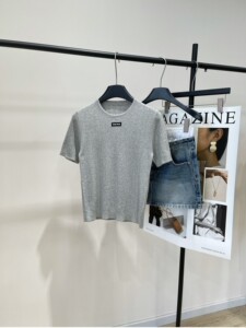 自带慵懒随性活力感浅灰色领口黑标精选棉针织短袖上衣25早秋新品
