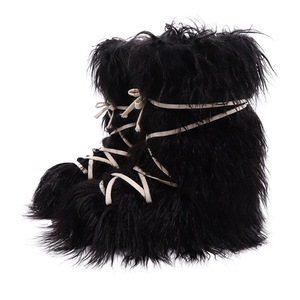跨境痞幼同款2025冬季欧美时尚太空靴毛毛款月球鞋雪地靴女加绒女