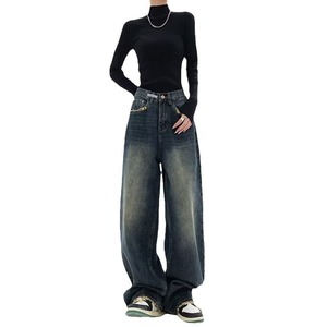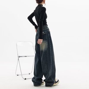 春夏新款牛仔裤女高腰显瘦直筒宽松美式复古高街休闲裤阔腿裤裤子