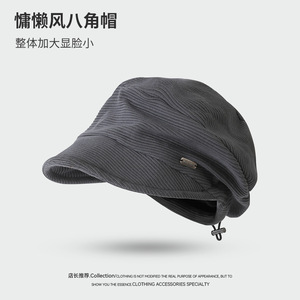 日系复古灯芯绒贝雷帽女秋冬新款百搭显脸小马术帽大头围堆堆帽女