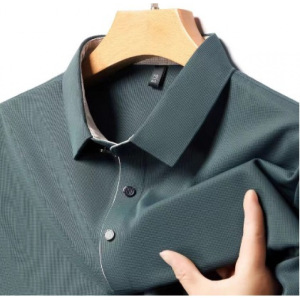 跨境外贸冰丝弹力薄款长袖恤男式春秋季中年休闲打底衫上衣