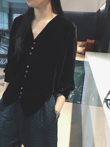 南油批发2025年秋季新款 经典版V领长袖真丝丝绒休闲时尚上衣衬衫