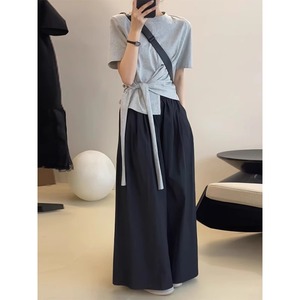 夏装搭配一整套韩系感不规则绑带T恤阔腿裤盐系减龄两件套女