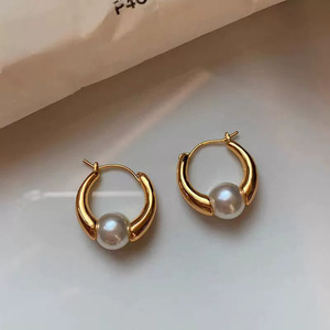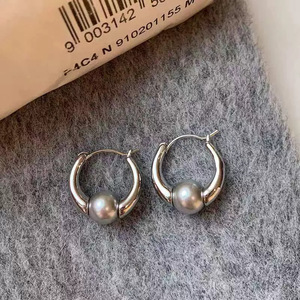 灰色澳白色珍珠耳环女轻奢小众高级感气质真金电镀耳饰耳圈圈耳扣