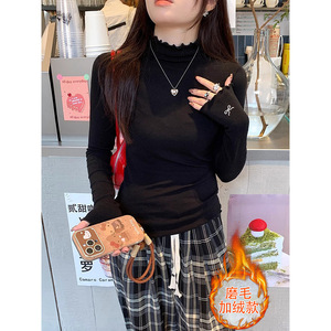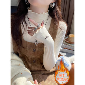 半高领德绒打底衫女2025新款秋冬内搭灰色边蝴蝶结设计感上衣