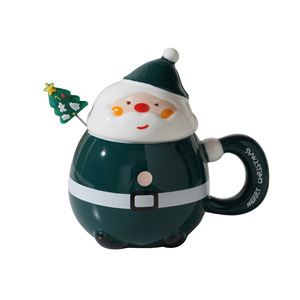 跨境圣诞节马克杯带盖家用可爱牛奶咖啡杯情侣杯高颜值礼品陶瓷杯