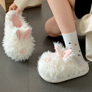 爆款卡通可爱白色厚底毛毛拖鞋女外穿2025新款秋冬百搭软底棉拖鞋