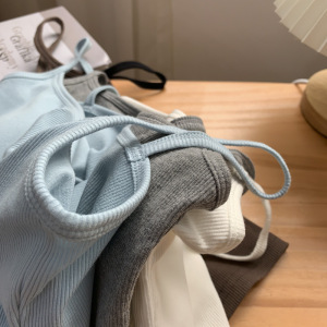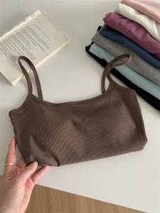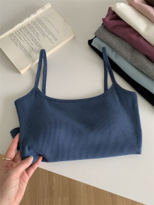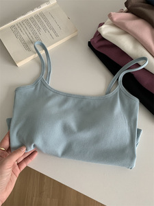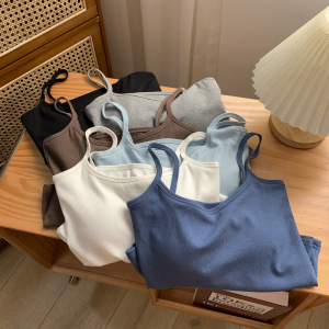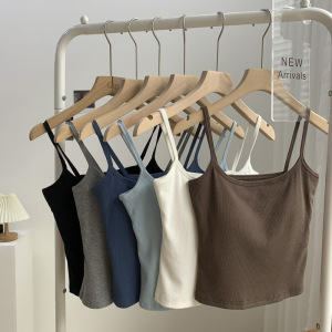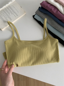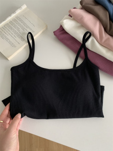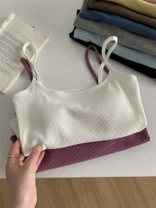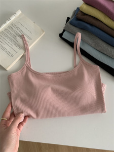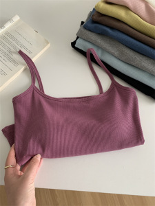 带胸垫弹力螺纹棉短款内搭打底无袖吊带上衣女外穿紧身露脐小背心