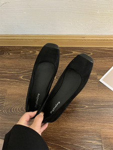 韩版设计感平底瓢鞋平底鞋黑色气质单鞋豆豆鞋春秋浅口法式女鞋子