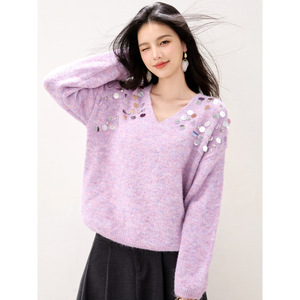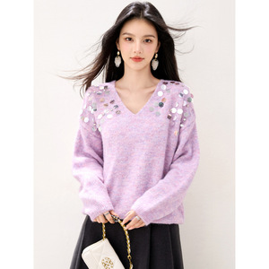 2025秋冬新款亮片甜美小清新毛衣慵懒高级感宽松显瘦针织上衣6961