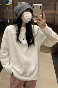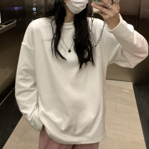 白色德绒打底衫女秋冬保暖内搭纯色长袖上衣宽松百搭磨毛加绒恤