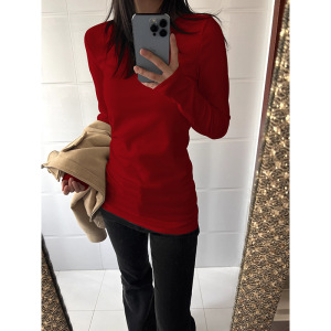 韩系白色正肩长袖恤女秋冬内搭修身收腰中长款打底衫遮屁股上衣