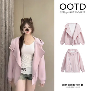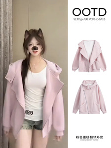 山东即墨卫衣外套女款秋季2025新款连帽宽松美式韩系穿搭初秋薄款