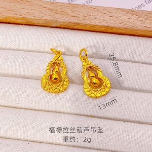 古法镂空摆动拉丝葫芦吊坠 金店同款轻奢金丝福禄挂坠沙金项链女