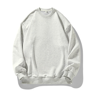 400G重磅圆领卫衣纯色春季新款美式复古潮牌情侣宽松外套可二开q