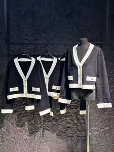 高品质~秋冬新款小香风撞色V领羊毛休闲百搭针织开衫女毛衣外套女