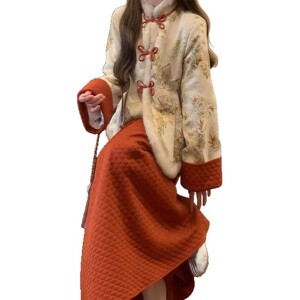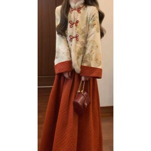2025过年战衣中国风盘扣保暖棉服外套半身长裙高级新中式女装秋冬