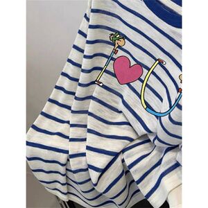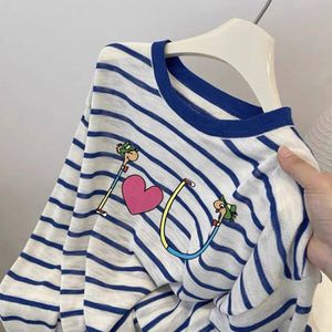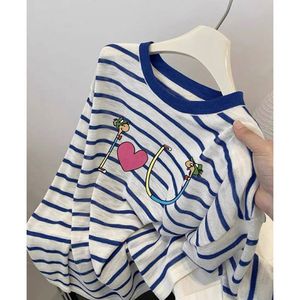 韩系学院风趣味卡通印花长袖t恤女春秋设计感撞色防晒条纹上衣