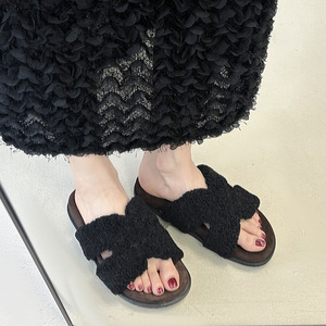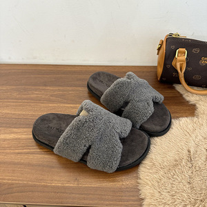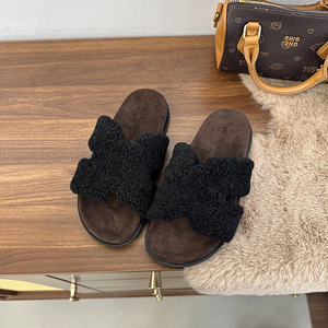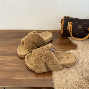 仙女风厚底毛毛拖鞋女外穿2025秋冬新款家居时尚百搭勃肯一字棉拖