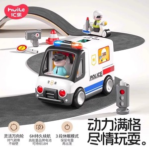 汇乐交警车玩具电动儿童仿真消防车模型电动早教益智玩具救护车