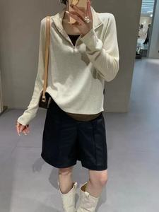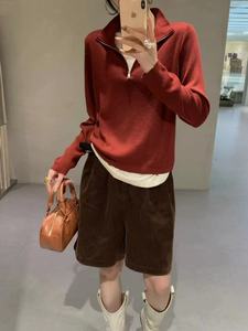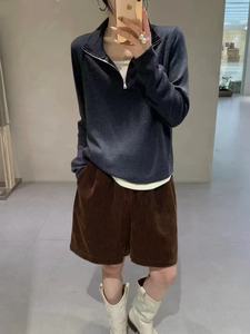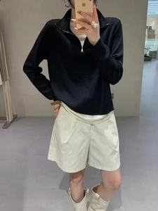 0903-154假两件蚕丝羊毛秋季新款高品质拉链款针织衫女装上衣
