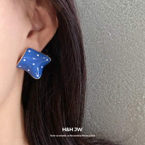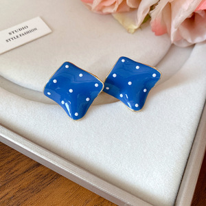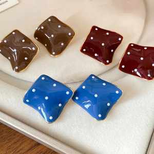 银针波浪方形波点纯色耳环法式多巴胺时尚简约耳钉轻奢高级感耳饰