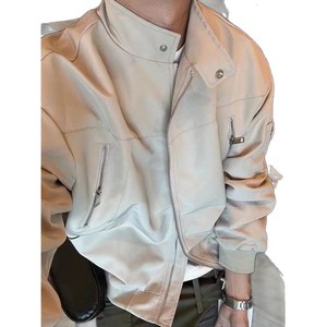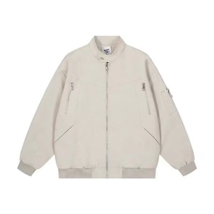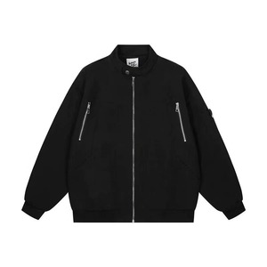 美式复古工装立领外套男春秋季潮牌拼接设计感飞行员夹克短棒球服