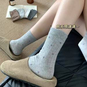 初秋温柔小碎花中筒袜日系简约百搭堆堆袜miu系复古清冷女