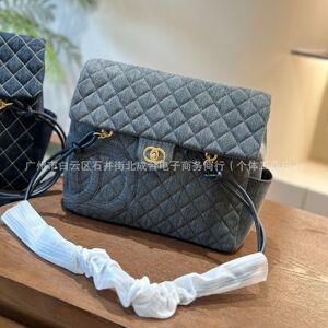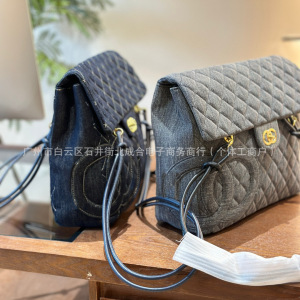 复古vintage牛仔水洗帆布手提翻盖托特包cf菱格大容量单肩购物包