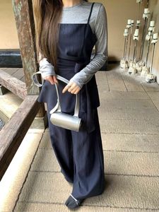 篱笆篱笆啦 韩女主 侧绑带吊带+针织上衣+垂感显瘦长裤三件套套装