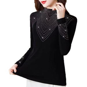 烫钻洋气上衣女显瘦黑色秋季新款半高领高弹力修内搭大码打底衫