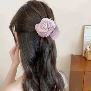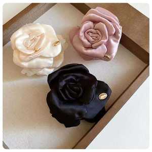 超仙山茶花抓夹氛围感缎面花朵发抓半扎盘发夹子后脑勺发爪发饰品