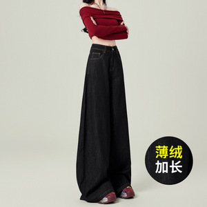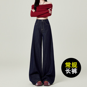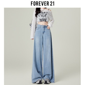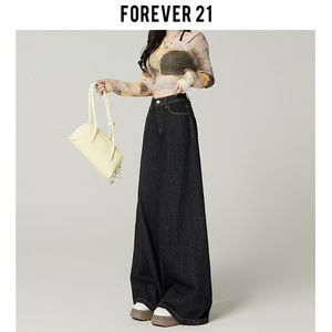 Forever 21复古深蓝大阔腿牛仔裤女春秋垂感高腰宽松垂感拖地裤子